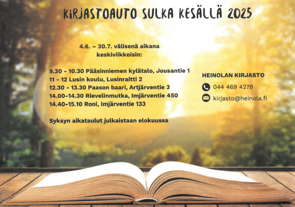 Kirjastoauto pysähtyy Lusin Kylätalon pihalla myös kesällä 4.6.-30.7. keskiviikkoisin klo 11-12.